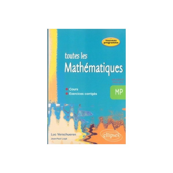 Toutes Les Mathematiques , Mp , Cours Et Exercices Corriges - Jean-paul Loge , Luc Verschueren - Ellipses Marketing, TL880 Pages, Pages: 883, Broché, Ellipses Marketing